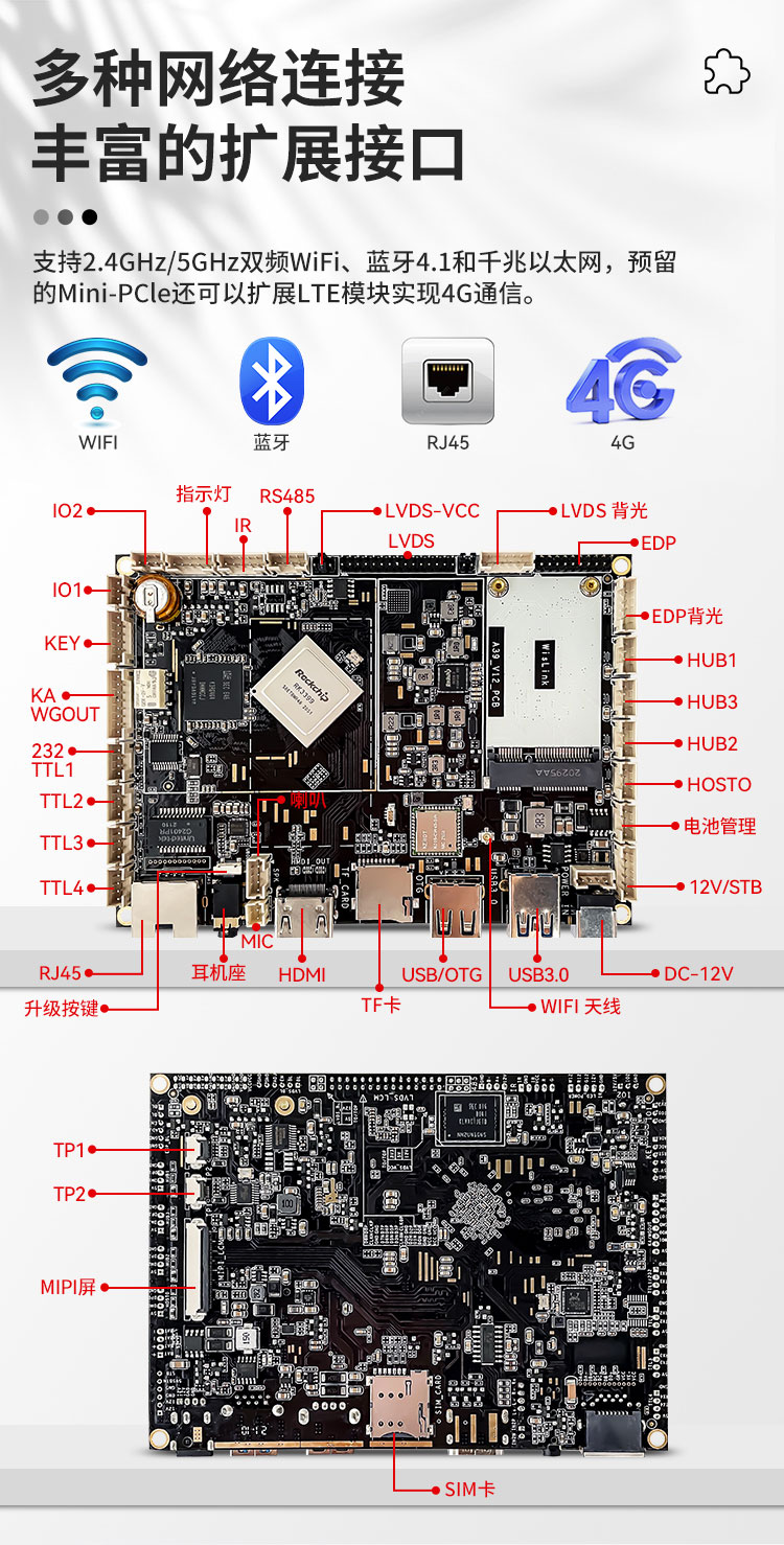 ◆高集成度,集成USB/LVDS/eDP/以太網(wǎng)/HDMI/WIFI/藍牙于一體,簡化整機設(shè)計,可插TF卡。