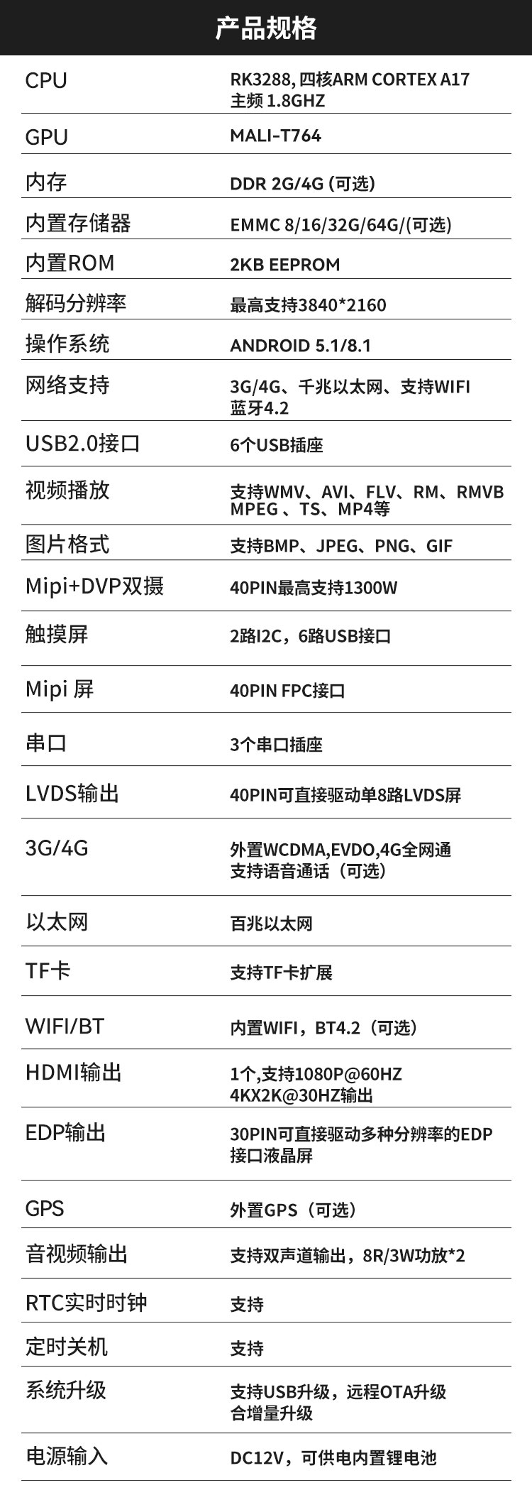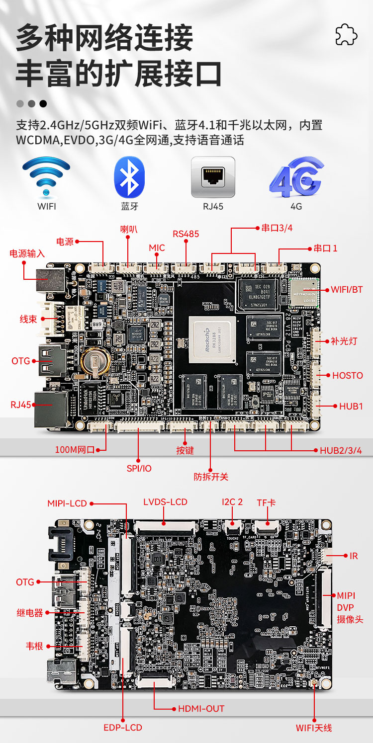 ◆ 支持 WIFI,藍牙,以太網(wǎng),并可選配 4G,GPS;
