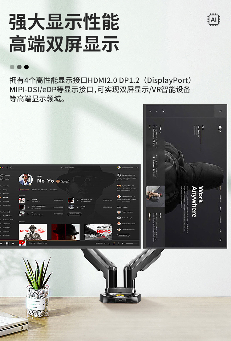◆ 支持雙 MIPI/LVDS/EDP/HDMI 等顯示屏,可做三屏異顯;