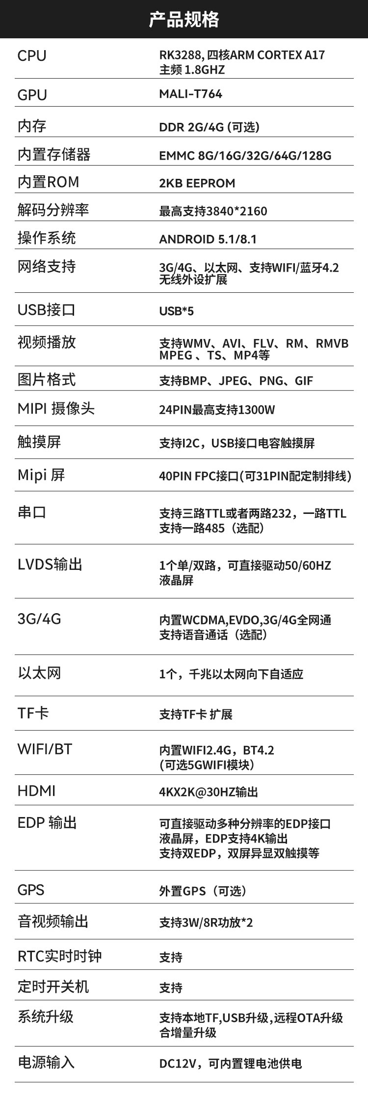 ◆高清晰度。最大支持3840x2160的解碼和各種LVDS/eDP接口的LCD顯示屏.支持EDP-4K輸出。